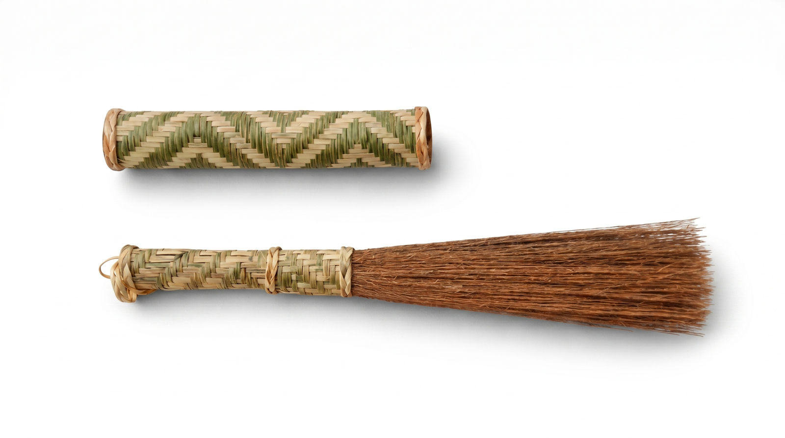 Synsar Rit is a traditional hand broom made for everyday cleaning and sweeping. It features a tightly bound bundle of natural fibre bristles attached to a woven bamboo handle, creating a tool that is both lightweight and easy to use. The handle is crafted using bamboo strips woven into a firm grip, making it comfortable to hold while sweeping. The bristles are made from natural plant fibres, which are flexible enough to gather dust and debris while still being durable for regular use. The design is simple and practical. It works well for cleaning floors, corners, and small spaces where larger brooms may not be convenient. The compact size also makes it easy to store or hang when not in use. Because it is made using natural materials, the broom has a raw and functional appearance rather than a polished, synthetic look. The combination of bamboo and natural fibres reflects traditional methods of making everyday household tools. Each piece is handmade, so slight differences in the weave, handle shape, and bristle arrangement are expected. These variations are part of the natural crafting process. Synsar Rit is a straightforward, durable cleaning tool that combines practicality with traditional craftsmanship.
